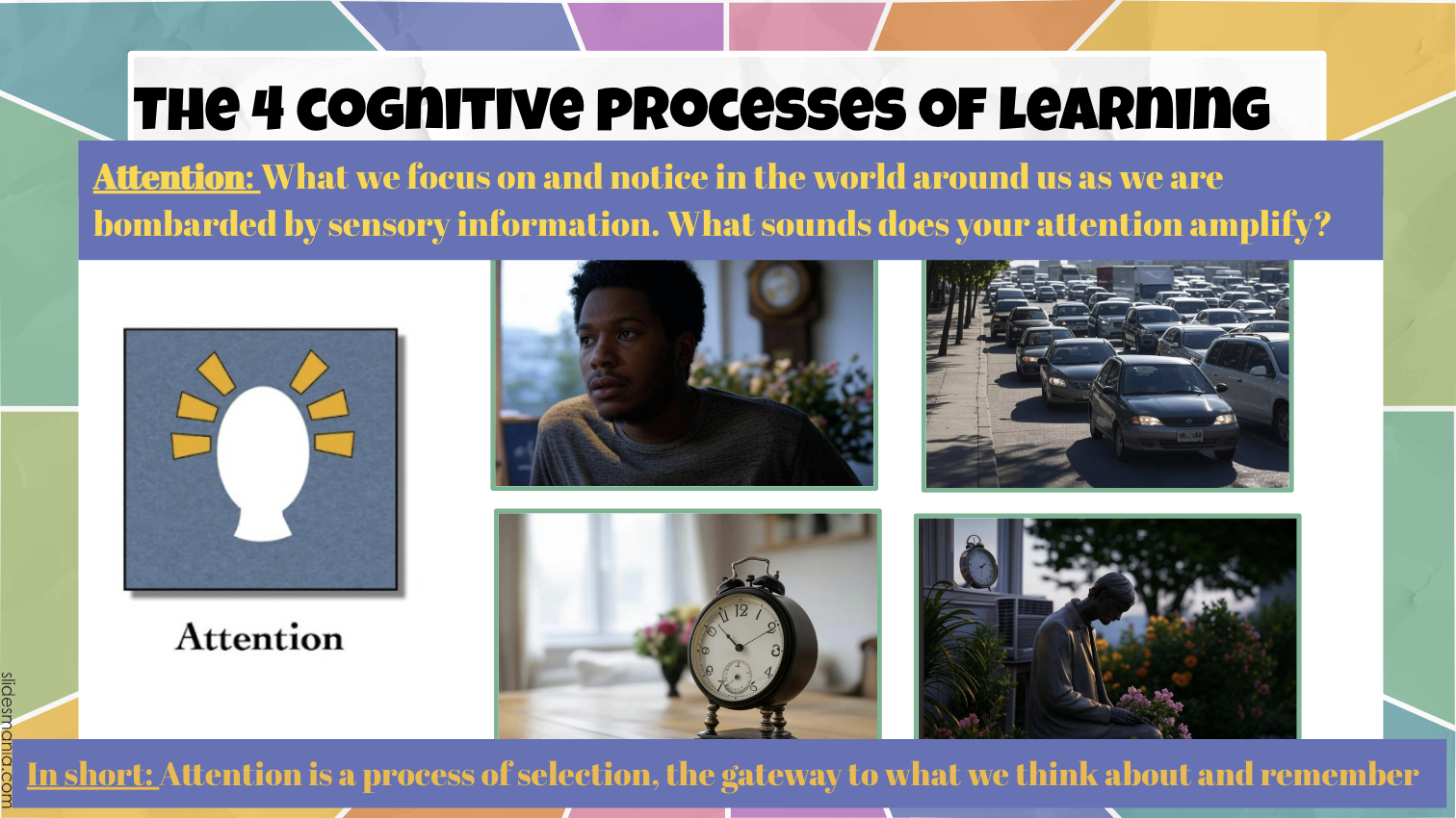 In learning, attention is critical. Students only remember and process the information they notice. As educators, our first step is to capture and guide attention, creating conditions where learners can engage fully with the material. In short, what students pay attention to is what they are likely to learn.