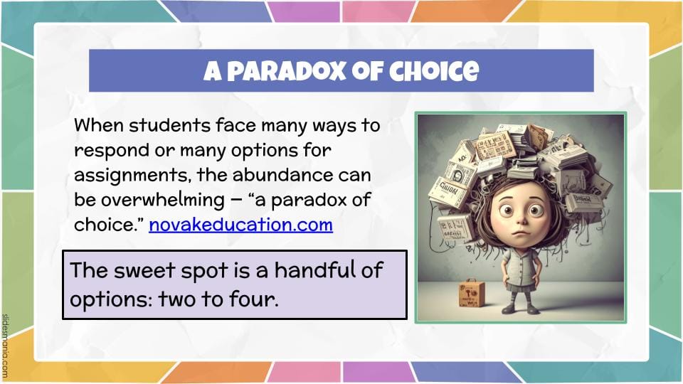When applying UDL in the language classroom, a few immediate tensions arise when it comes to providing choices for students. Unlike other subjects, where students can independently seek resources, language teachers are often the primary source of language input. Authentic materials can often be too complex, risking confusion and raising students´ affective filters. So, how do we provide choice and support learners who are still building the skills to reflect, express themselves, and access content, without compromising rigor or confidence?